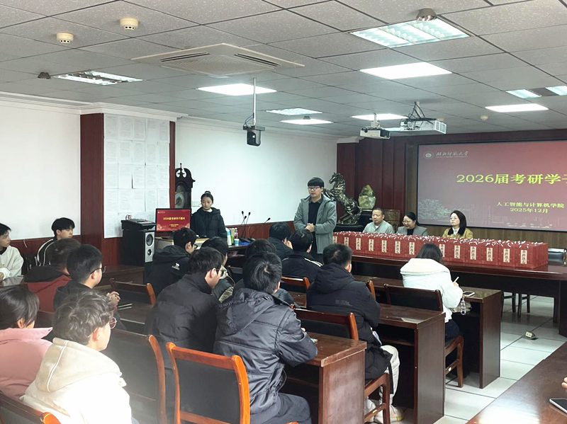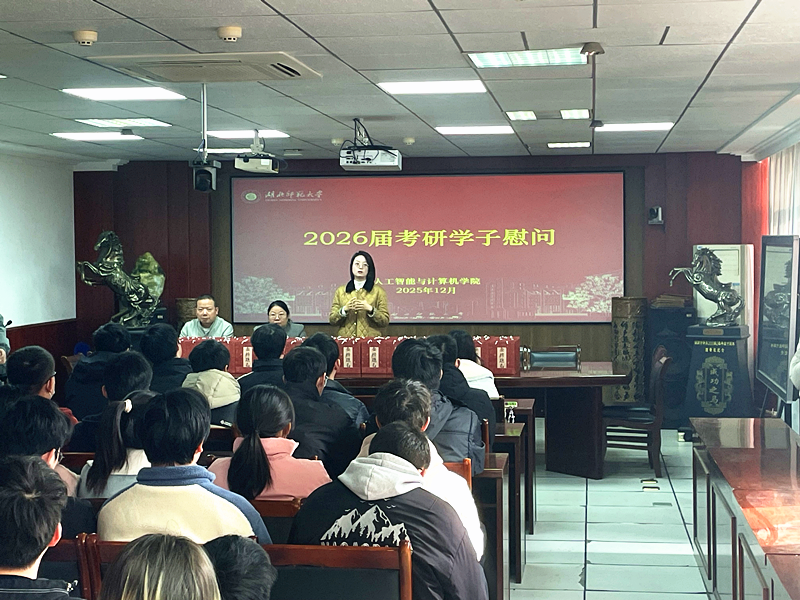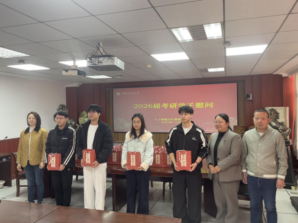 为进一步落实立德树人根本任务,体现学院对考研学子的深切关怀,鼓舞备考士气,缓解备考压力,12月11日上午,人工智能与计算机学院在教育大楼1715教室举办了2026届考研学子慰问活动。学院党委副书记付静、毕业班班主任柳隽宇、阮青劲等老师、2026届部分考研学子参加活动。年级辅导员卢梦主持活动。